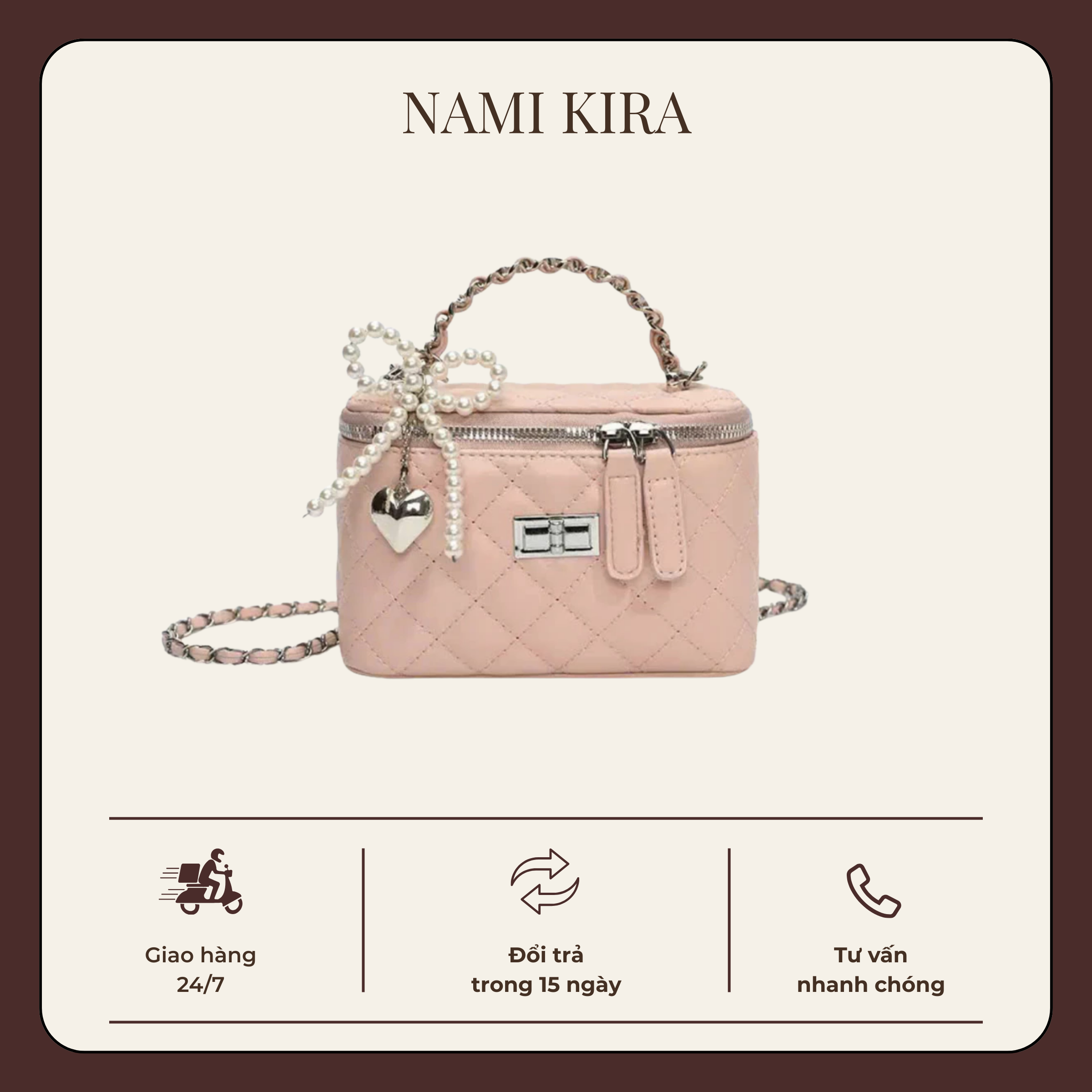 Túi xách cốp hồng đáng yêu cho nữ của Nami Kira là mẫu túi hướng đến những cô nàng yêu phong cách nhẹ nhàng, nữ tính nhưng vẫn muốn giữ nét hiện đại và thời trang. Gam màu hồng ngọt ngào giúp chiếc túi trở thành điểm nhấn nổi bật, mang lại cảm giác trẻ trung và tươi mới cho tổng thể trang phục. Thiết kế dáng cốp vuông vắn tạo sự chỉn chu, giúp outfit trông gọn gàng và tinh tế hơn dù sử dụng trong bất kỳ hoàn cảnh nào.